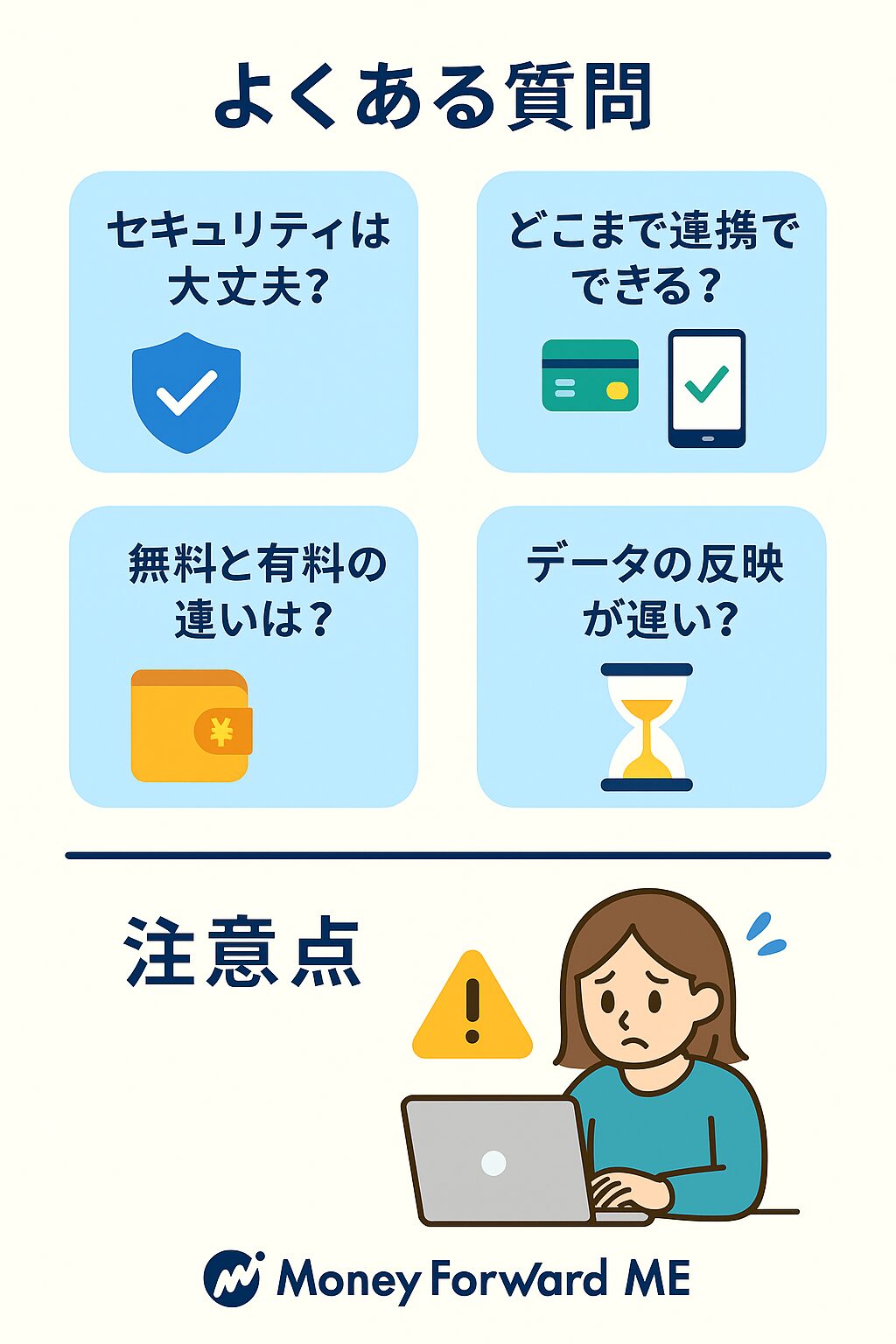 家計簿アプリ「マネーフォワードME(以下、マネーフォワード)」は、その自動連携機能や視認性の高いグラフ表示で多くのユーザーに支持されています。しかし、初めて使う方にとっては「安全なの?」「使い方が難しいのでは?」といった疑問や不安もあるでしょう。この記事では、マネーフォワード利用者によくある質問と、事前に知っておきたい注意点を3000文字のボリュームで詳しく解説します。