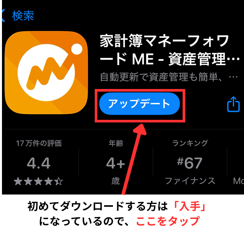 App Store → 「マネーフォワードME」で検索 → 「入手」
