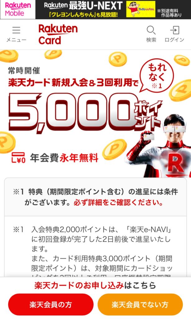 ステップ①:楽天カード公式サイトにアクセス