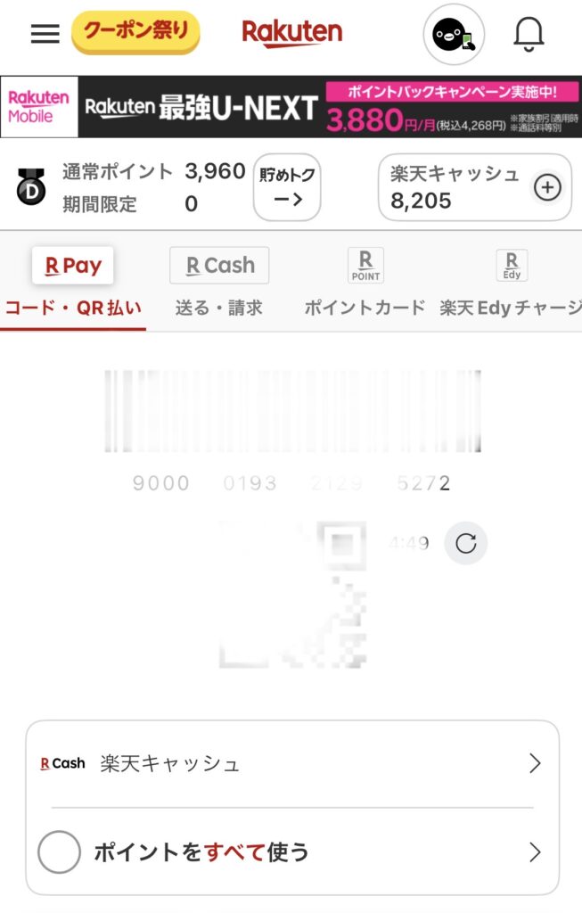 我が家では近所のスーパーやドラッグストアで楽天ペイを使っています。